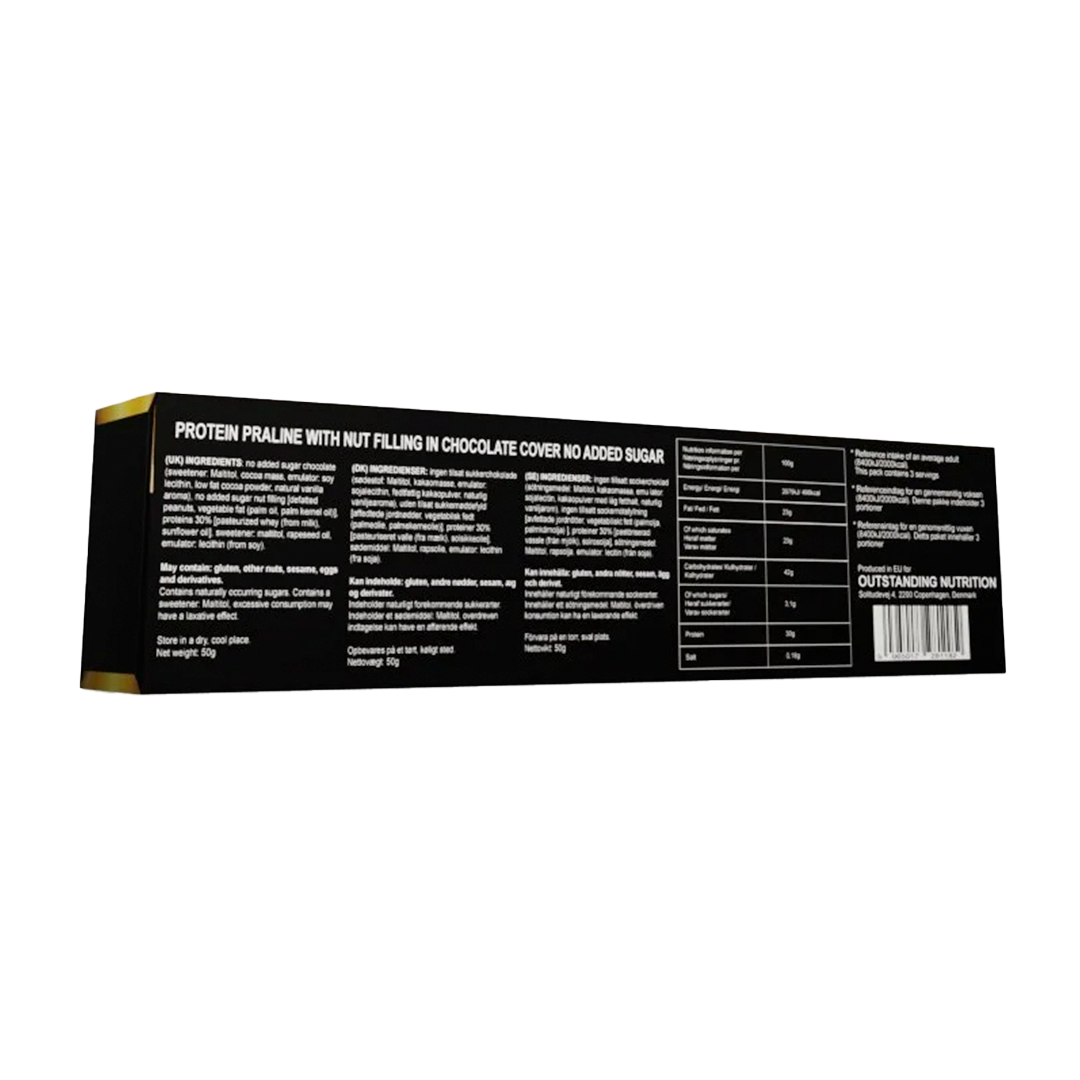 Nyd en rig og tilfredsstillende przekąska uden i gå på kompromis med dine mål. Vores chokoladebar uden tilsat sukker med cremet nøddefyld er den perfekte løsning til dig, der elsker god smag og samtidig vil holde ingredienserne enkle og bevidste. Fremstillet med kvalitetskakao og naturligt sødet med maltitol, byder baren på en blød chokoladeovertræk og en proteinrig nøddekerne.
